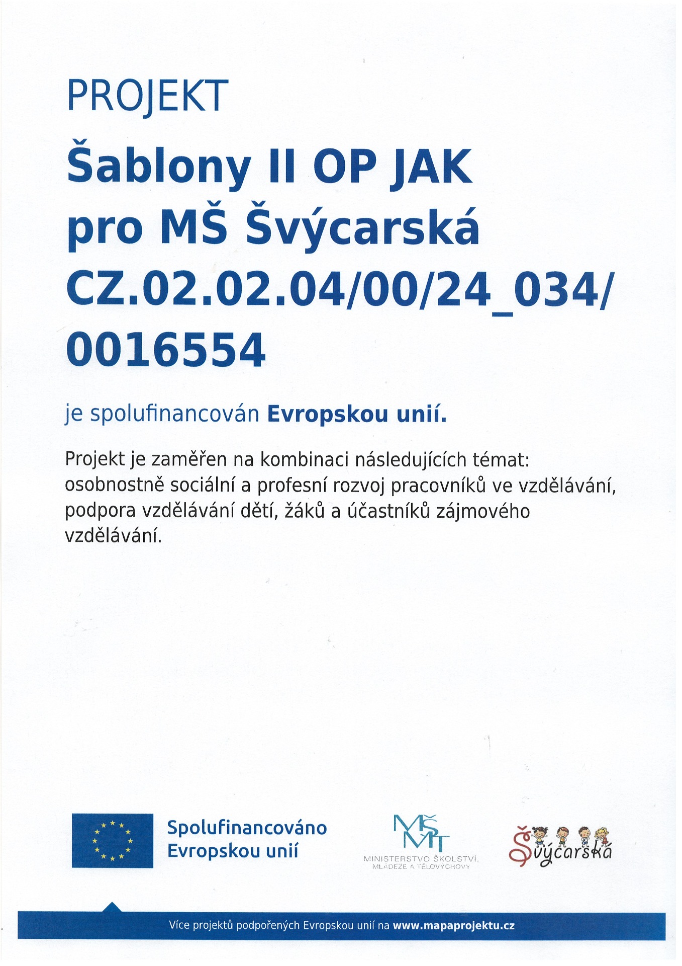 PROJEKT - ŠABLONY II OP JAK PRO MŠ ŠVÝCARSKÁ CZ.02.02.04/00/24_034/0016554